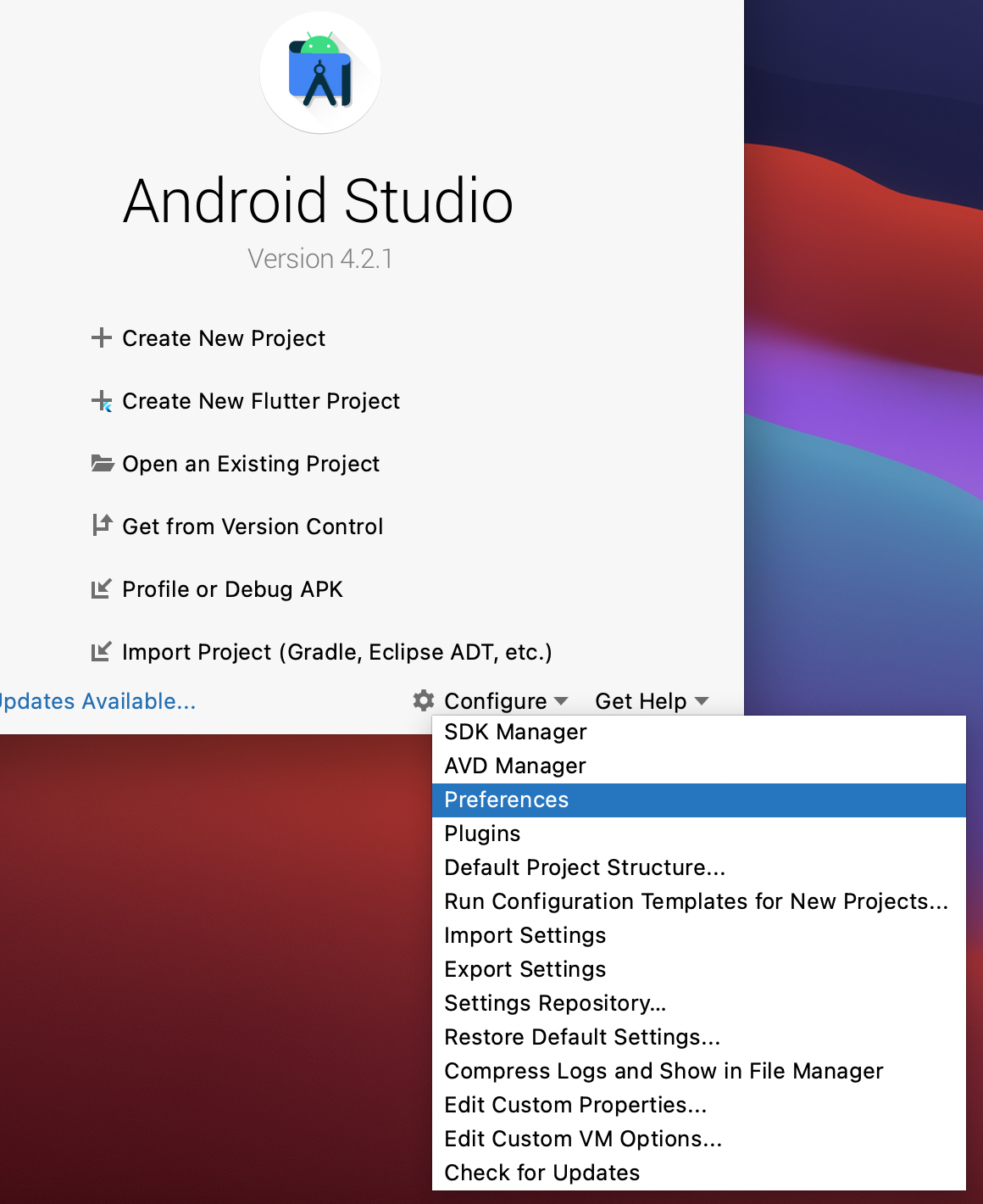 Flutter는 Android Studio를 사용해서 제작 가능하다. Android Studio는 기존에 설치해둔 게 있어서 바로 설정할 수 있었다.