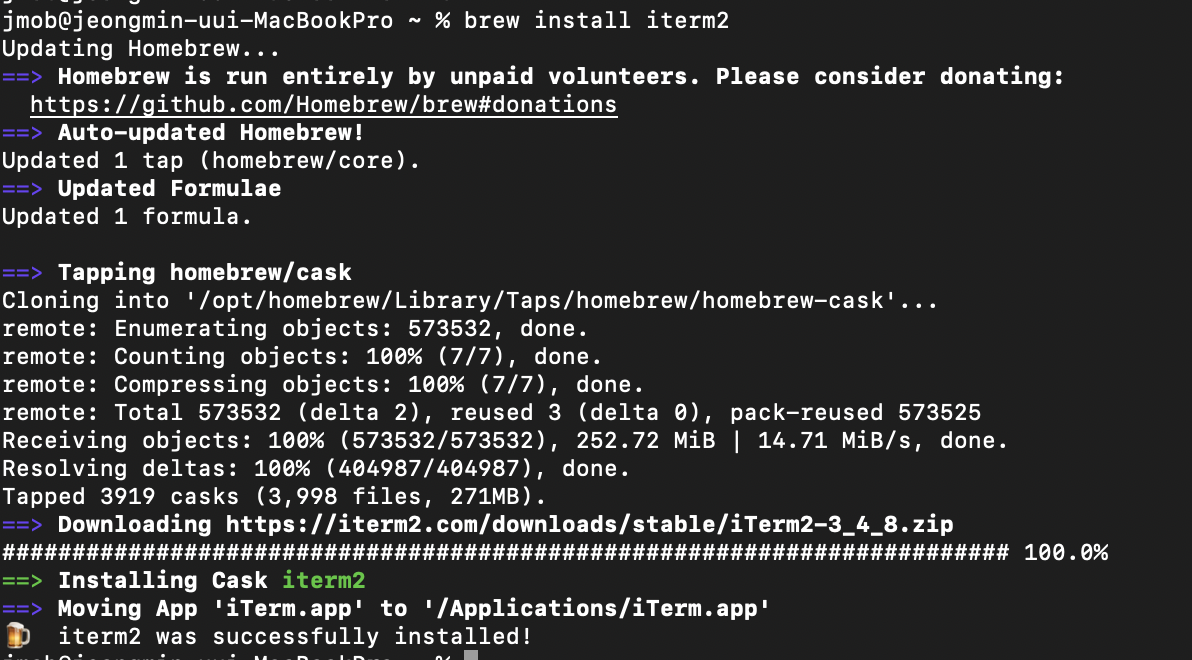 이전글에서 설치했던 Homebrew를 통해서 iterm2를 설치한다.