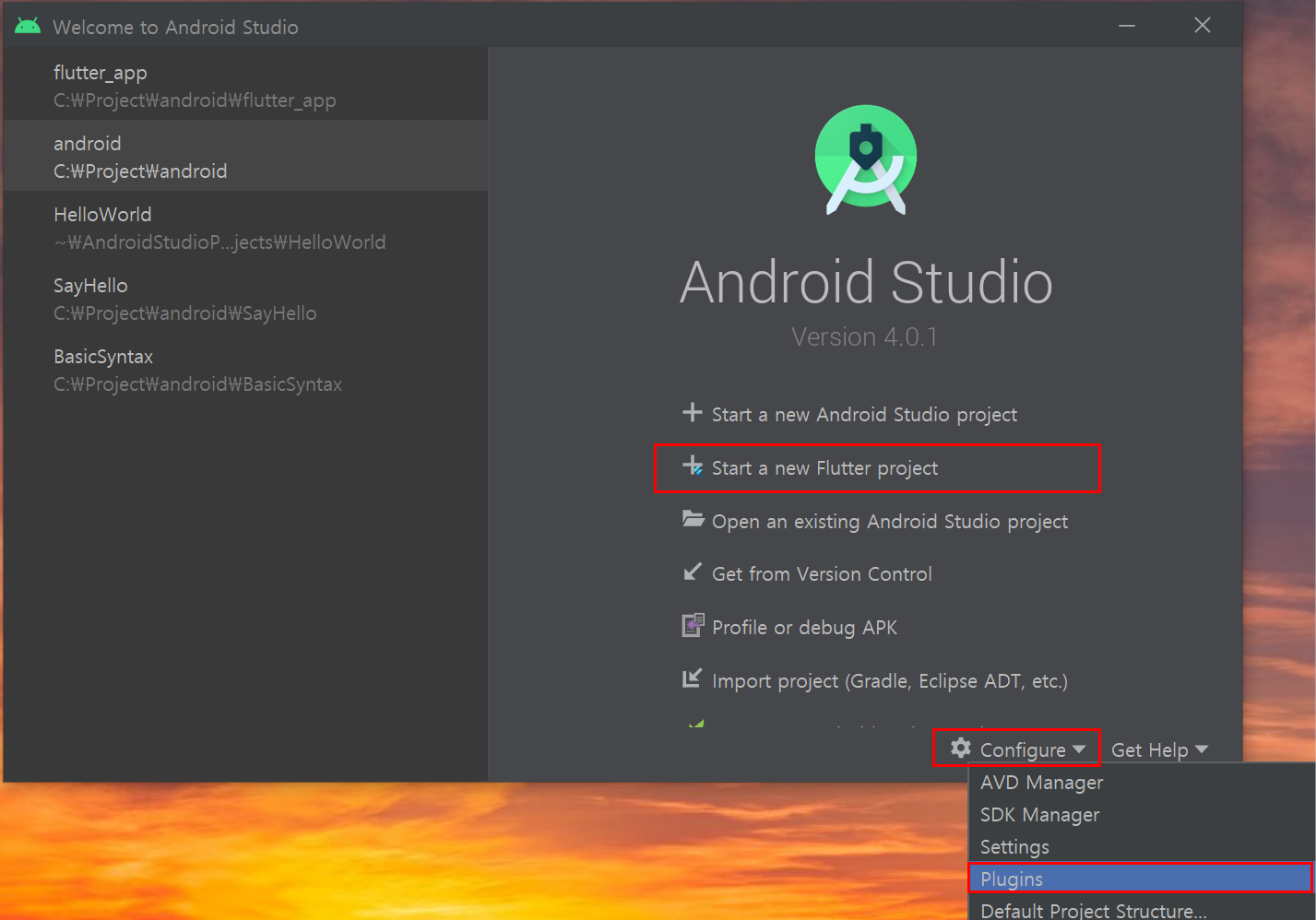 1. Flutter SDK Download 아래 링크에서 SDK를 다운로드한다. 설치 방법에 적혀 있는 내용으로 C:\Program Files\ 하위에는 권한 문제로 설치 하지 말라고 되어 있다. Warning: Do not install Flutter in a directory like C:\Program Files\ that requires elevated privileges. flutter.dev/docs/get-started/install/windows Windows install How to install on Windows. flutter.dev 2. IDE 설치 Flutter는 Android Studio를 사용해서 제작 가능하다. Android Studio는 기존에 설치해둔 게 있어서 바로 ..